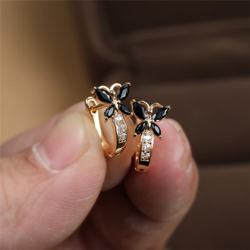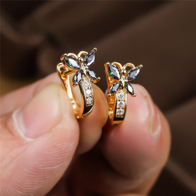 Cute Rainbow Butterfly Hoop Earrings For Women Gold Color Metal Blue Green White Zircon Wedding Party Jewelry Birthday Gifts