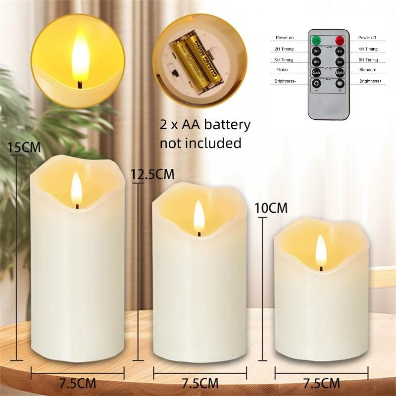 3-Pack Flameless LED Candle with Remote 3D Wick Real Wax Paraffin Candle Operated LED Candles Festive Christmas Decoration