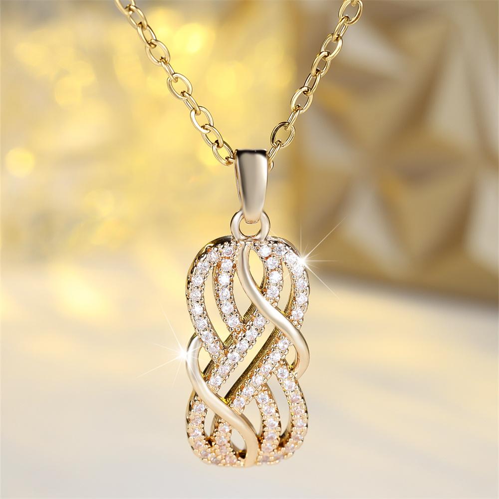 Белый Циркон Антикварный Полый Кулон Бесконечность Ожерелья для Женщин Винтажная Золотая Цепочка Свадебные Украшения Подарок на День Рождения