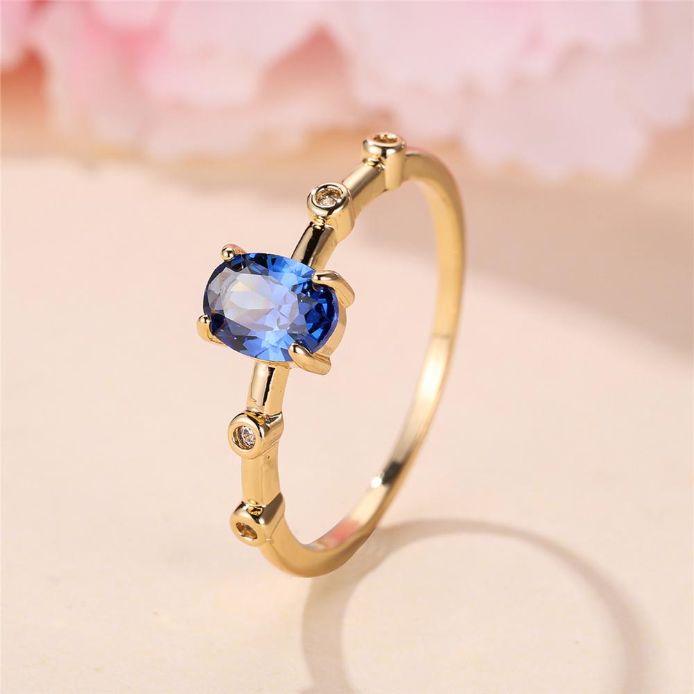 Шарм Женское Синий Овальный Круглый Циркониевый Камень Кольцо Золотой Цвет Элегантный Подарок Свадебные Украшения Для Женщин