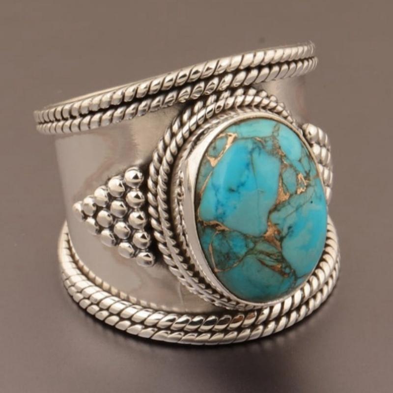 Богемное винтажное геометрическое кольцо с имитацией бирюзы для женской этнической бижутерии, аксессуары для повседневной и праздничной одежды — купить товар онлайн с бесплатной доставкой по всему миру!