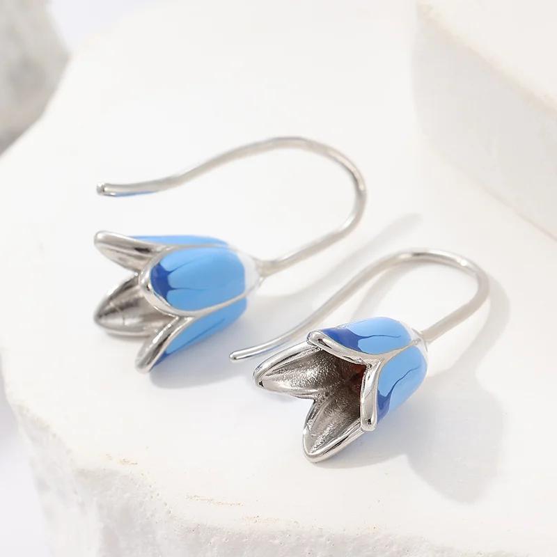 Изысканные серьги-подвески в форме цветка, синий колокольчик, женские элегантные ювелирные аксессуары, подарки, подходят для повседневной носки