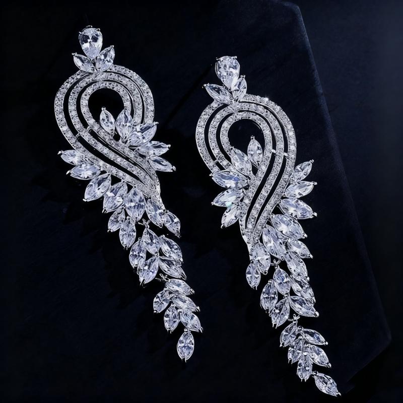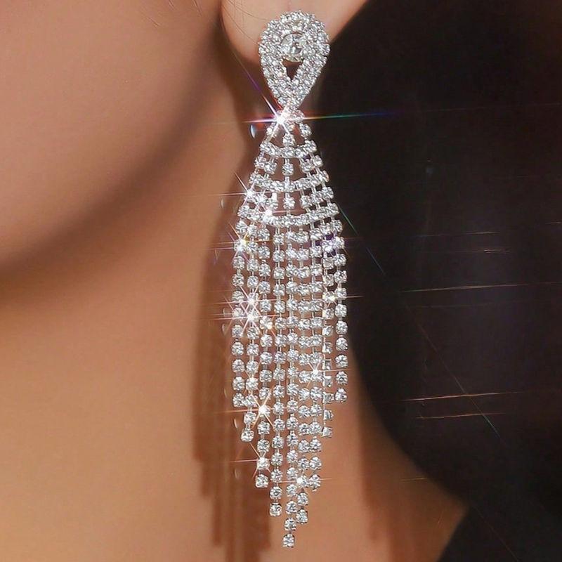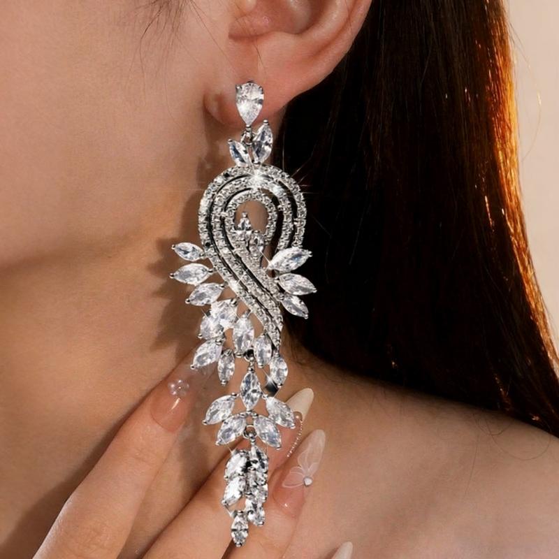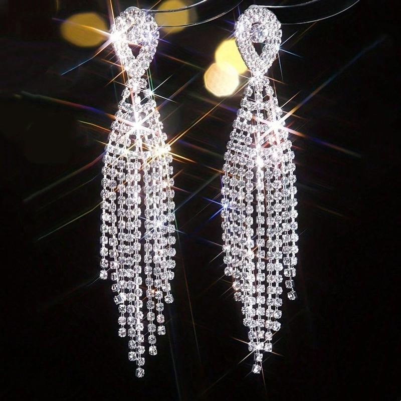 Длинные серьги с бахромой, украшенные сверкающими подвесками с цирконами. Идеально подходят для вечеринок, встреч, Рождества. Подходят в качестве свадебного подарка.