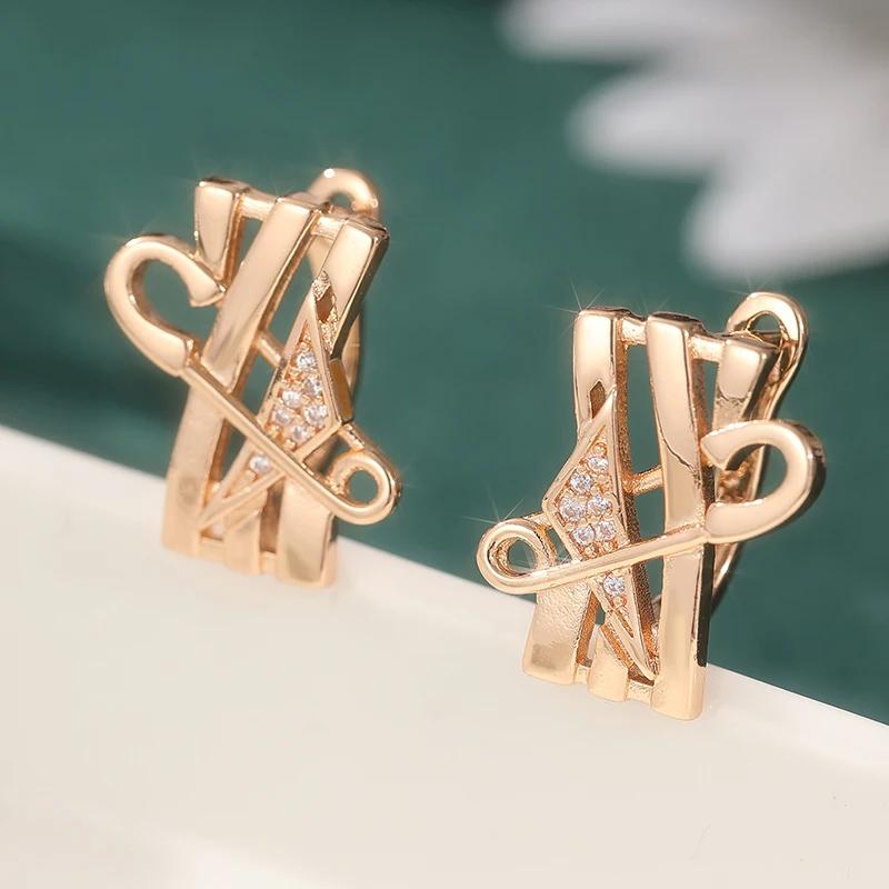 Позолоченные серьги-кольца с пряжкой-булавкой Женские Изысканные Лаконичные Синтетические Цирконии Подходят для Повседневной Носки и Вечеринок Ювелирные Аксессуары