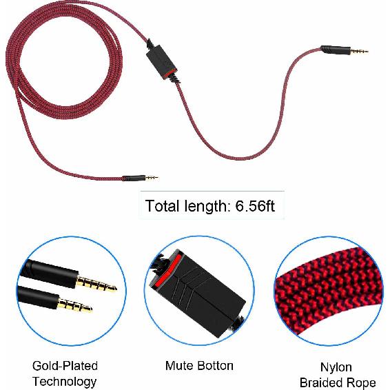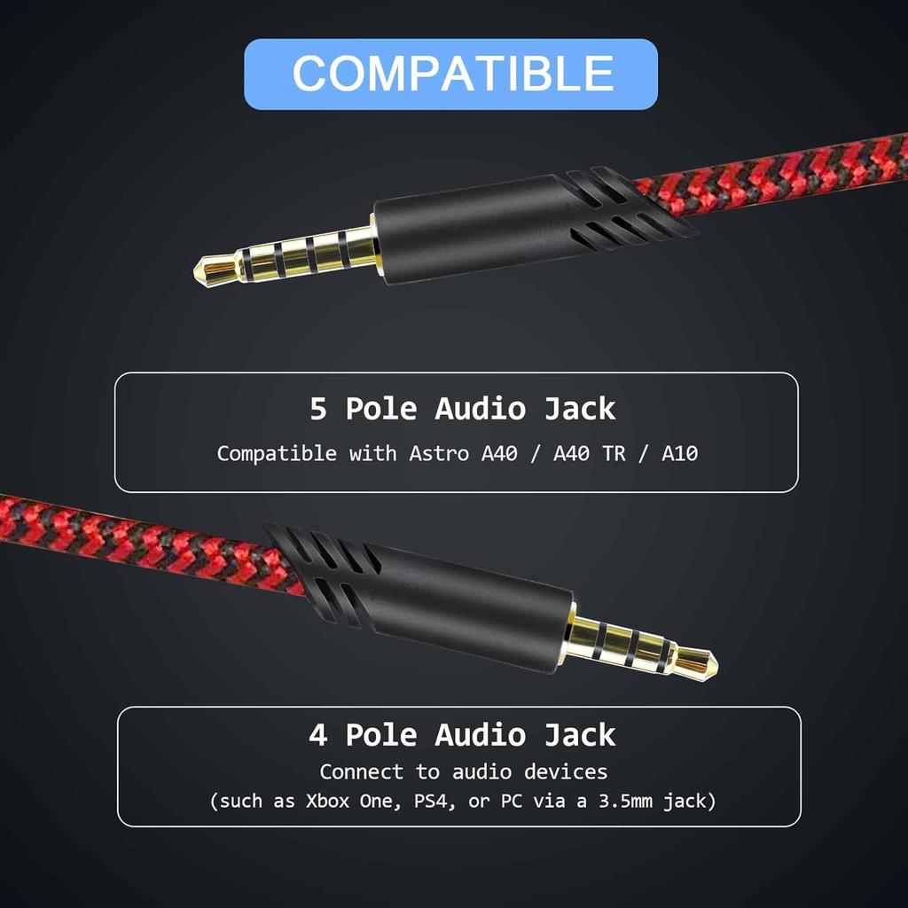 2.0M Replacement Audio Cable Compatible with Astro A40 A40TR Gaming Headset, Inline Mute Wire and No Volume Control Cord (Nylone Cord, Red/Black)