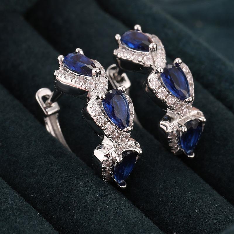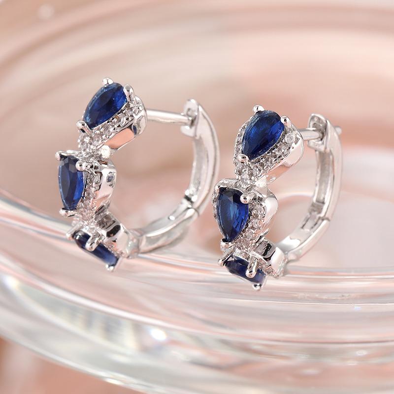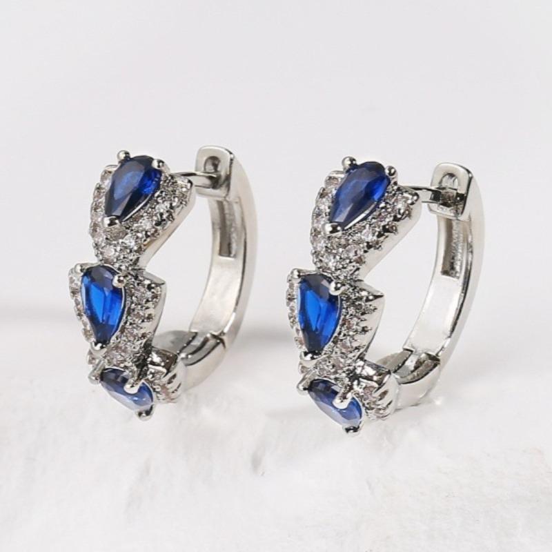 Luxury Blue Cubic Zirconia Hoop Earrings Women's Elegant Exquisite Wedding Party Accessories Silvery Plated Jewelry Gift