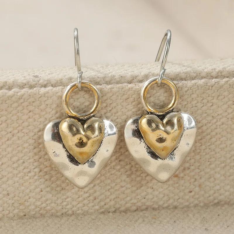 Двухцветные серьги-подвески в форме ретро-сердца, женские, для повседневной носки, изысканные серьги-подвески, ювелирные аксессуары