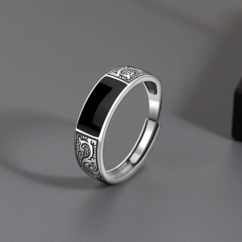 Винтажные кольца из искусственного оникса для мужчин, темперамент, нержавеющая сталь, регулируемое открытое кольцо, серебристый цвет, панк-украшения, подарки