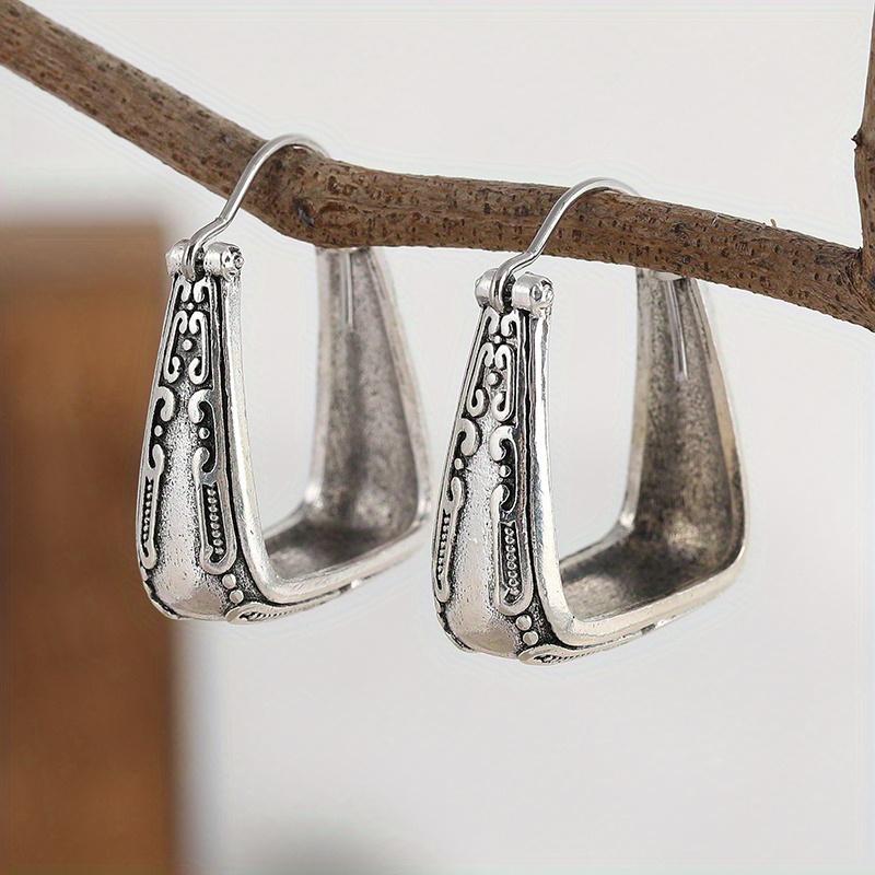 1 пара сережек-подвесок в форме сумки с ретро-узором, ювелирное изделие, серьги серебристого цвета, серьги ручной работы в стиле бохо с текстурой
