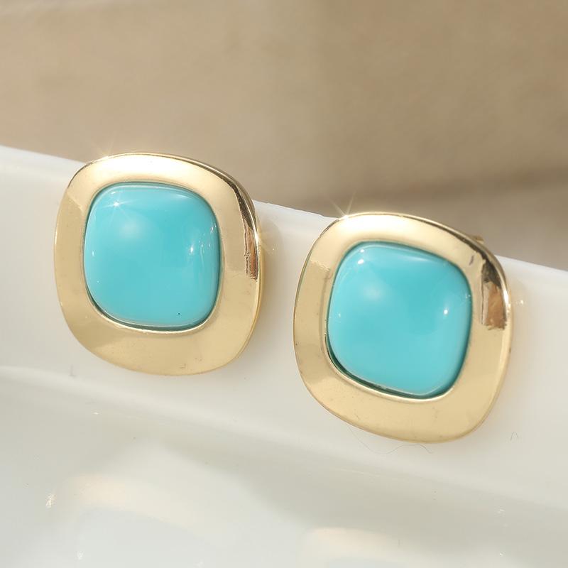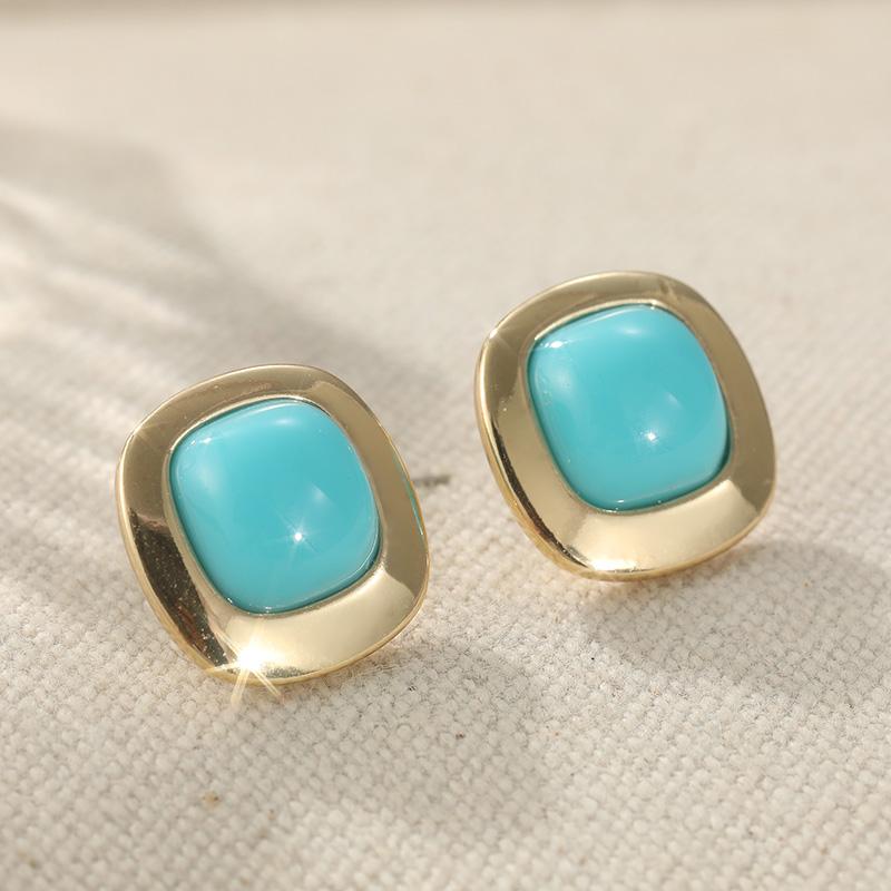 Винтажные квадратные серьги-пусеты из синтетической бирюзы и меди. Женские элегантные изысканные позолоченные повседневные ювелирные аксессуары