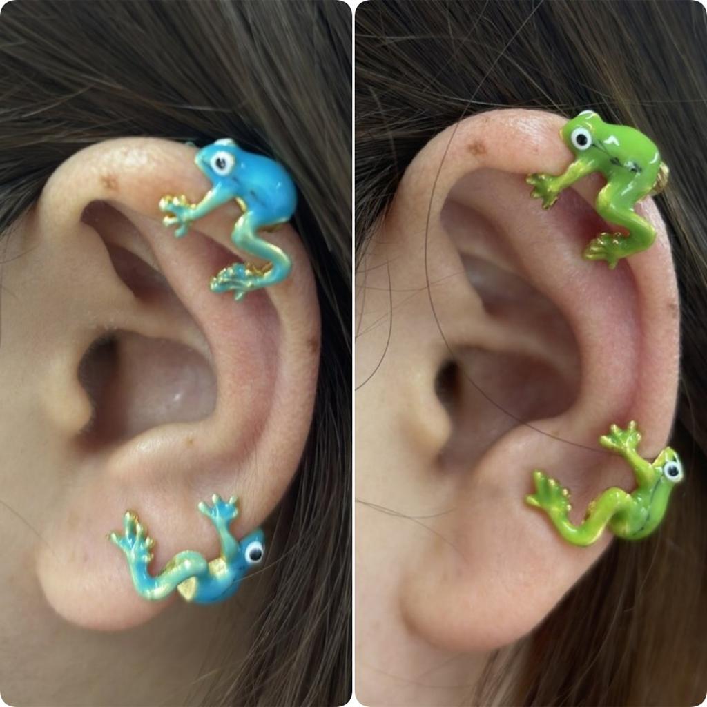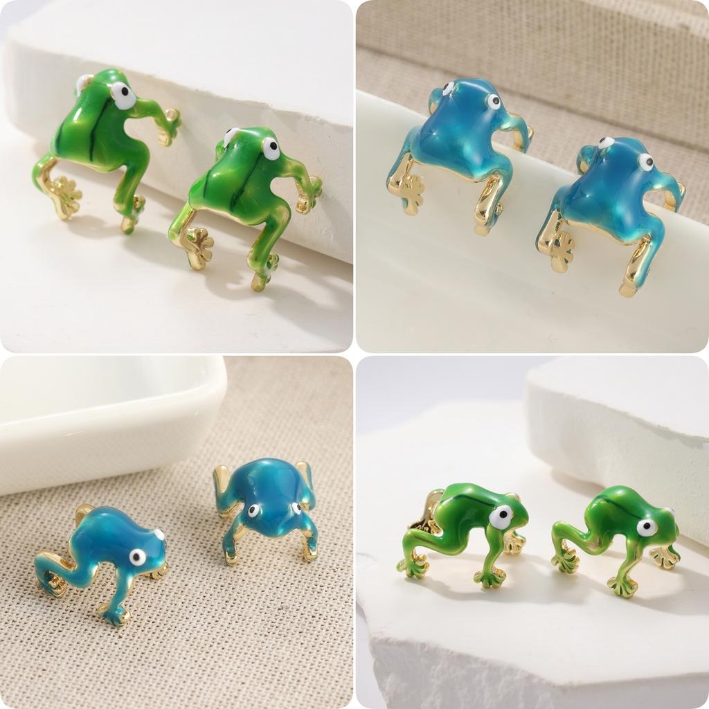 Прекрасный Креативный Сине-Зеленый Кафф на Ухо в Виде Лягушки для Женских Забавных Серег Ювелирные Аксессуары Подходят для Фестивальных Подарков для Друзей