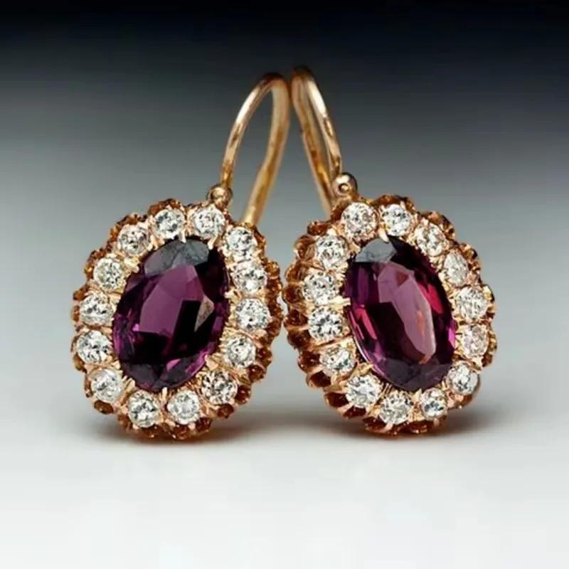 Элегантные серьги-капли золотого цвета с инкрустацией красными цирконами для женщин, модные свадебные серьги для помолвки, висячие серьги, ювелирные изделия
