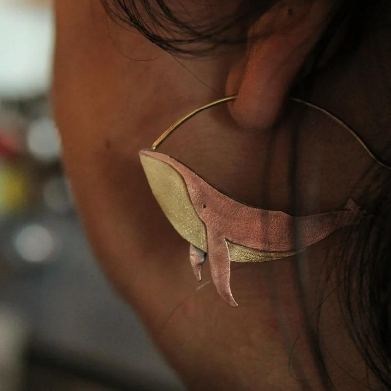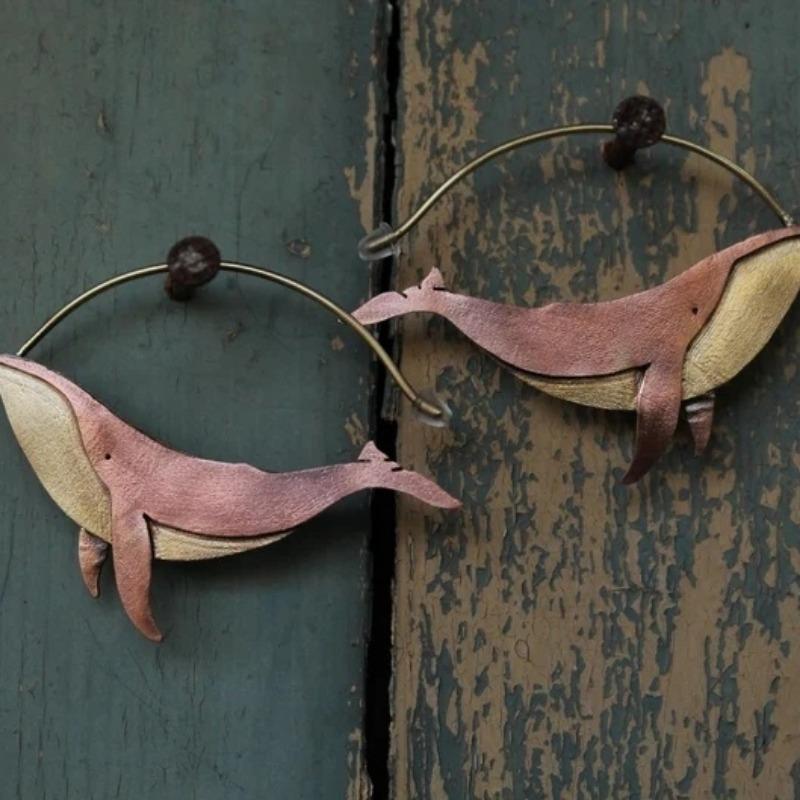 Двухцветные серьги-кольца с китовой акулой для женщин, милые шикарные серьги-подвески, новинка 2024 года, подарок для вечеринки