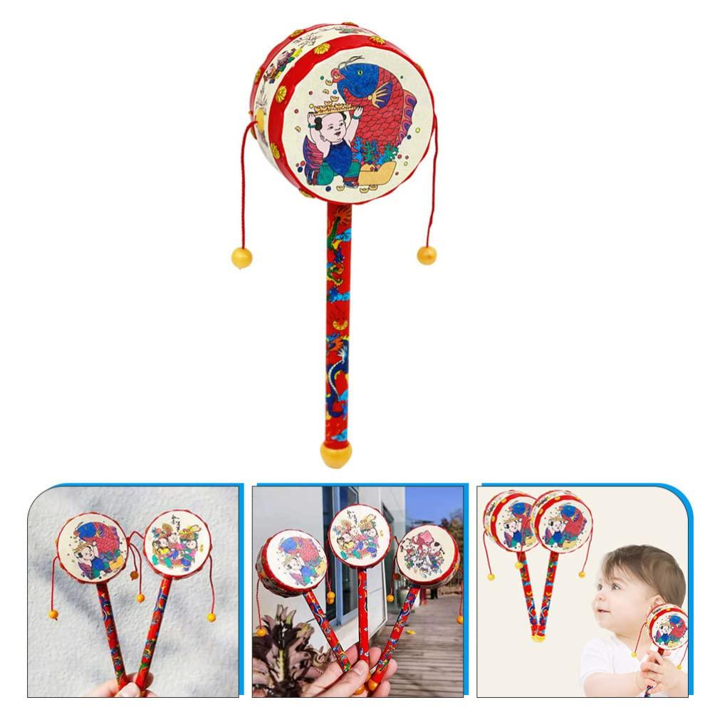 Kisangel Monkey Drum Chinese Rattle Drum Traditional Wooden Baby Rattle Toy Handheld Rattle for Baby Soothing Toy