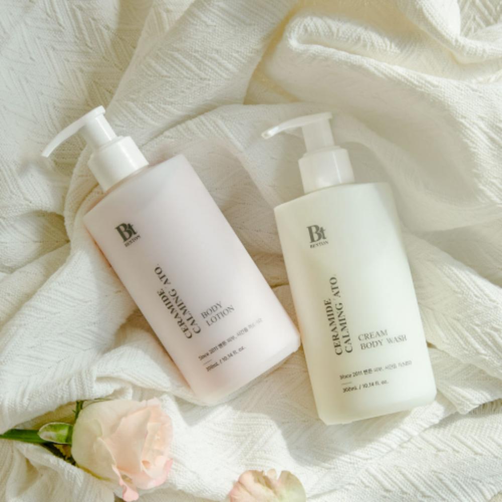 Бережный ежедневный уход за телом с успокаивающим гелем для душа и лосьоном для тела Benton Ceramide Calming Ato. Разработан для очищения, успокоения и увлажнения сухой и чувствительной кожи, одновременно поддерживая кожный барьер.