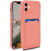 Silicone Phone Case with Card Holder & Camera Lens Protection (for iPhone 12 6.1 Inch) - Pink
