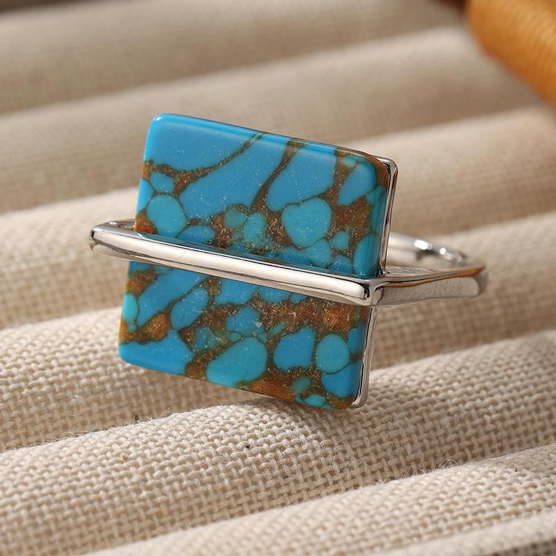 Бохо кольцо-куб из синтетической бирюзы