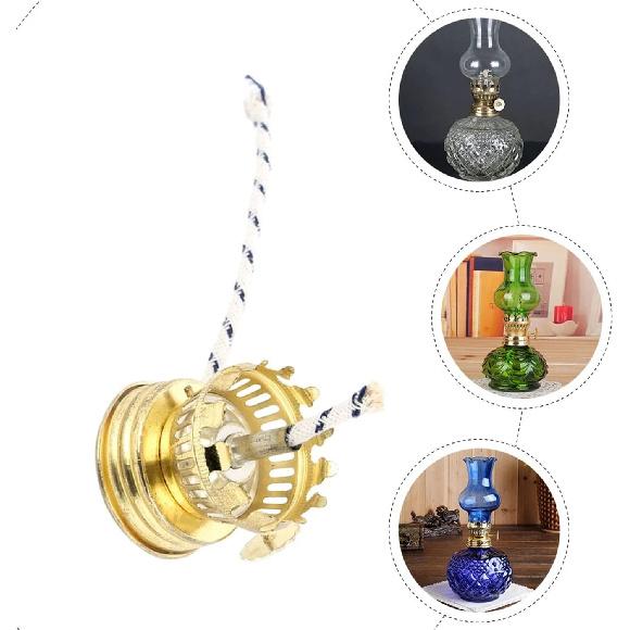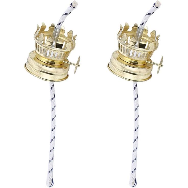 Набор из 2 латунированных керосиновых горелок - Запасная горелка с фитилём для винтажных и антикварных ламп - В комплекте фитили для керосиновой горелки