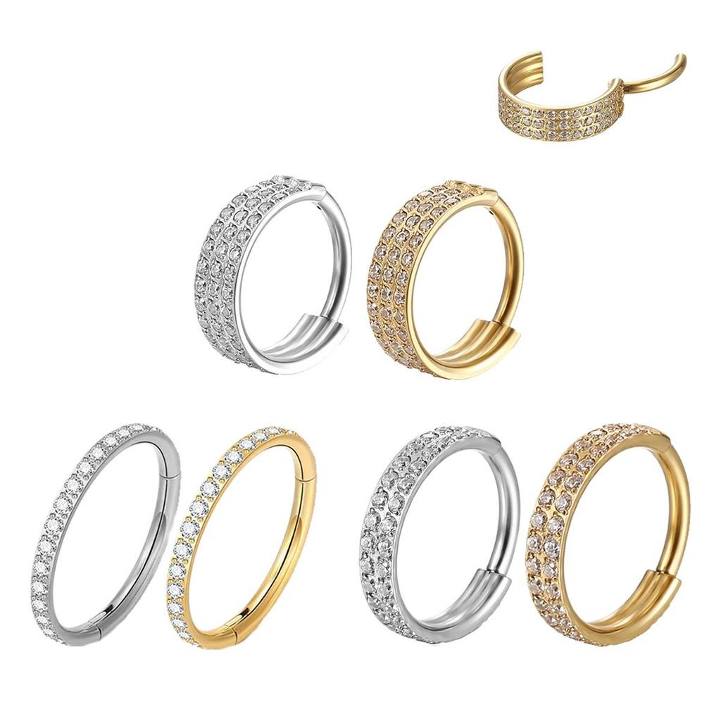 Пирсинг из нержавеющей стали, кольца-сегменты на петлях, кольца для носа с камнями CZ, серьги для пирсинга хряща уха, трагуса, хеликса, украшения для тела
