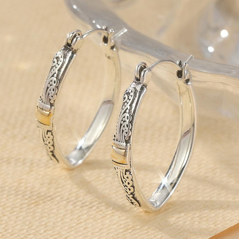 Винтажные серьги-кольца с ручной резьбой и текстурой с серебряным покрытием для изысканных женских украшений для вечеринок и отпуска, аксессуары для рукоделия