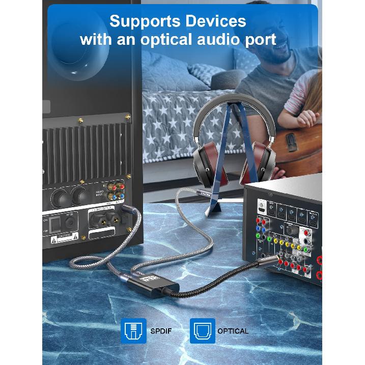Optical Audio Splitter 1 in to 2 Out Toslink Splitter Optical Adapter Ideal for Home Theatre and More-Black