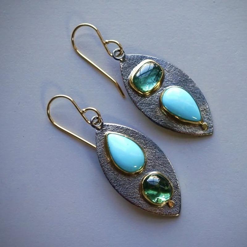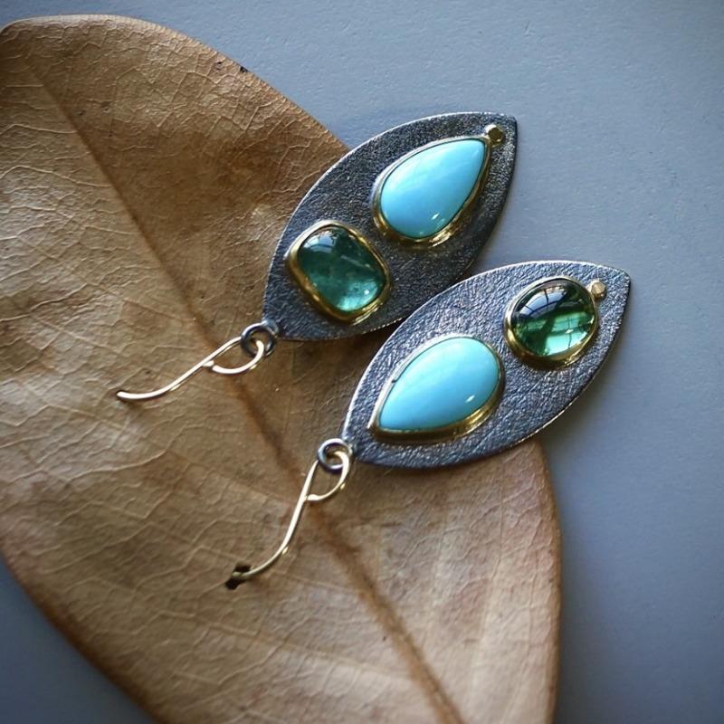 Jianjie Листовидная форма Двухцветные Камень инкрустированный Винтажные Женские Серьги-подвески Элегантные Ретро Серьги Украшение Мода