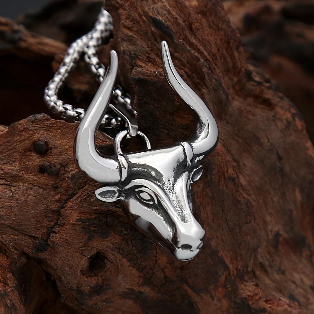 Винтажное Креативное Высокополированное Нержавеющая Сталь Голова Быка Ожерелье Панк Персонализированное Мужское Животное Подвеска Ювелирные Изделия Подарки
