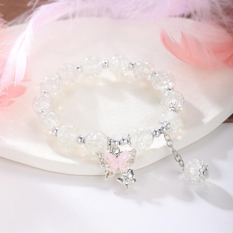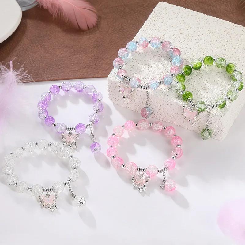 Богемный милый браслет из бусин с бабочкой для женщин и девочек, розового цвета, с имитацией нефрита и кристаллами, ручная работа, украшение на руку, подарки на день рождения