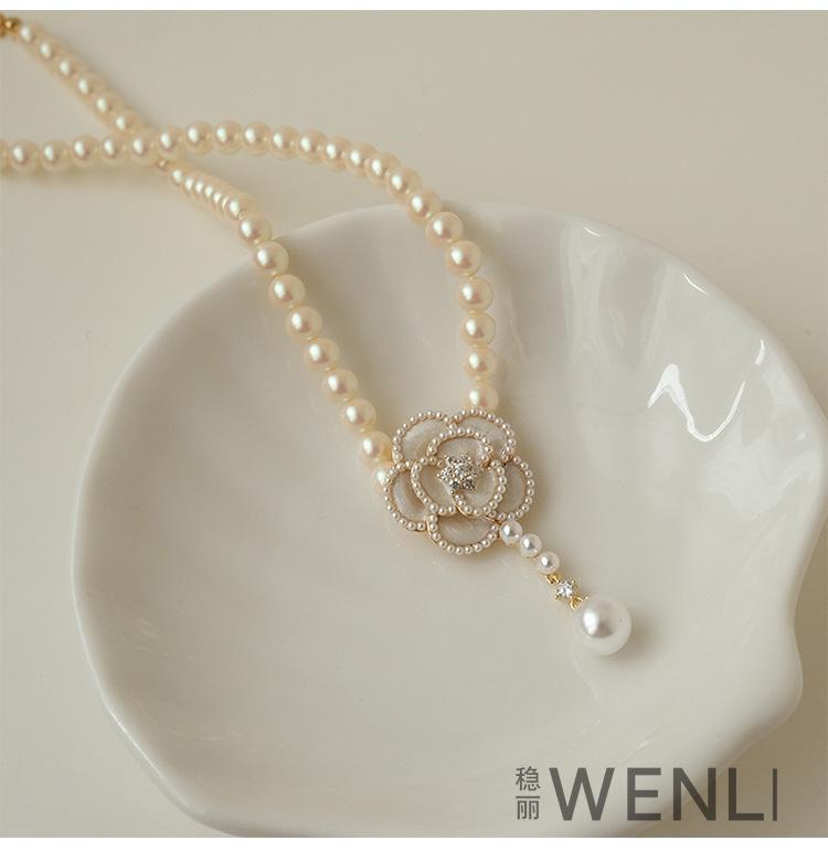 Винтажное ожерелье с подвеской в виде жемчужины и камелии для женщин, ожерелье-цепочка на ключицу с цветком, праздничное ювелирное украшение, подарок
