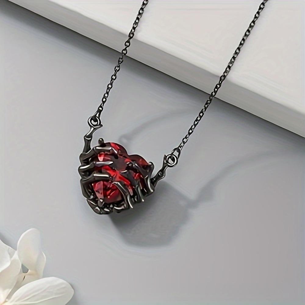 Готическое красное синтетическое циркониевое ожерелье в форме сердца с дизайном зомби-когтя, Фанковый стиль, Покрытый сплав цинка, Унисекс кулон