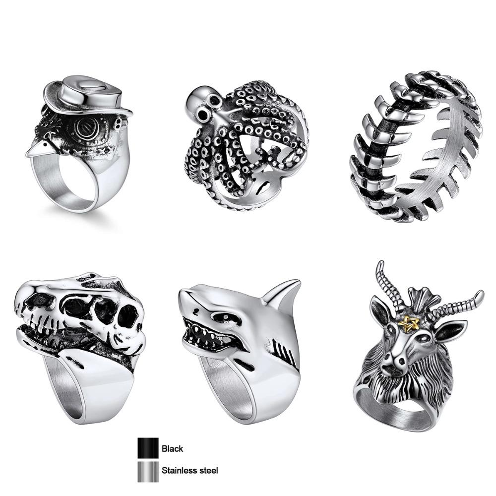 U7 Кольца из нержавеющей стали для мужчин, большие, с подвесками в виде птицы, козы, осьминога, акулы, змеи, кости, размеры 7-14, рок, панк, животные, череп, ювелирные изделия