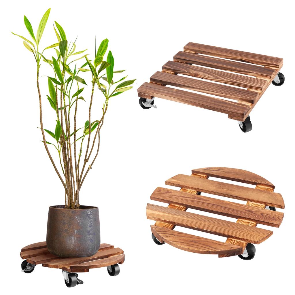 2Pcs Heavy Duty Flower Pot Mobile Tray Universal Wheel Mobile Base Round/Square Wooden Planter Tray Tree Flower Plants Stand