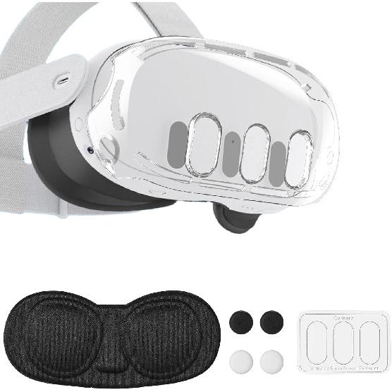VR Accessories for Meta Quest 3, Anti-Scratch Plastic Protective Cover Shell Tempered Glass Lens Protector Joystick Caps Set Compatible with Oculus