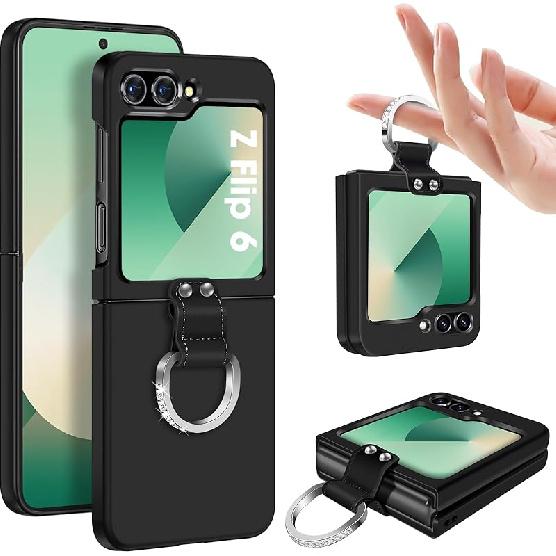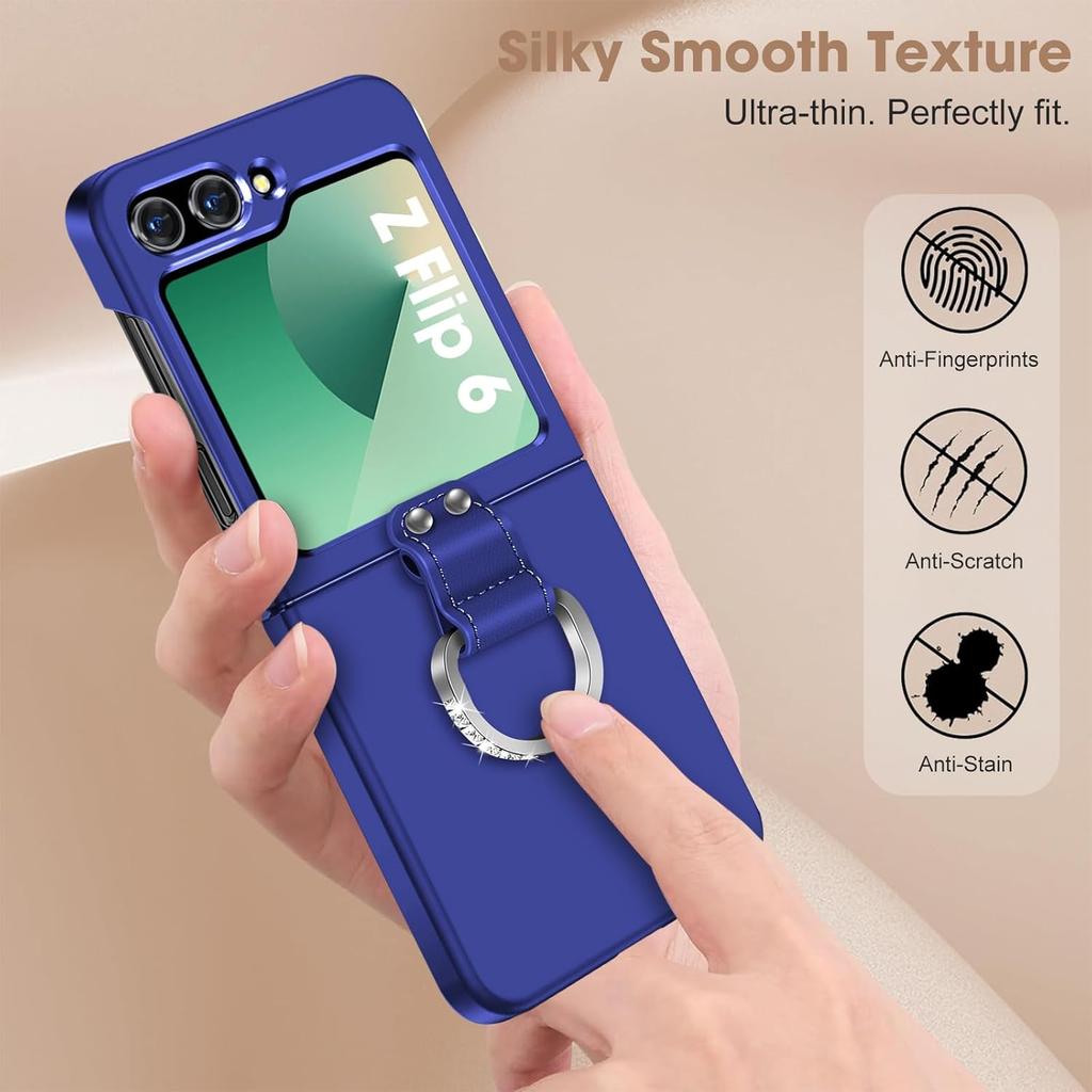 Z Flip 6 Case for Samsung Galaxy Z Flip6 5G, Ring Case for Women Silky Touch Slim Hard PC Matte Back Cover Ultra Thin Z Flip 6 Phone Case