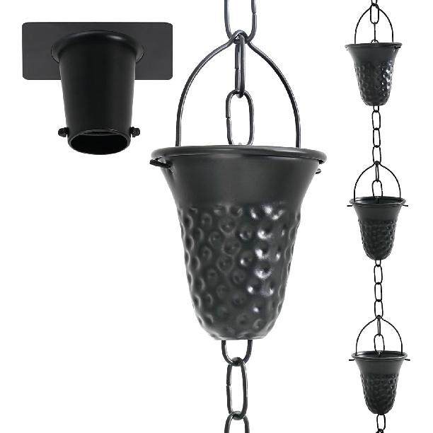Rain Chains for Gutters with Gutter Adapter, Aluminum Hammered Long Cup Gutter Chain Downspout, 8-1/2 Feet Length Replacement Rain Chain Gutters,
