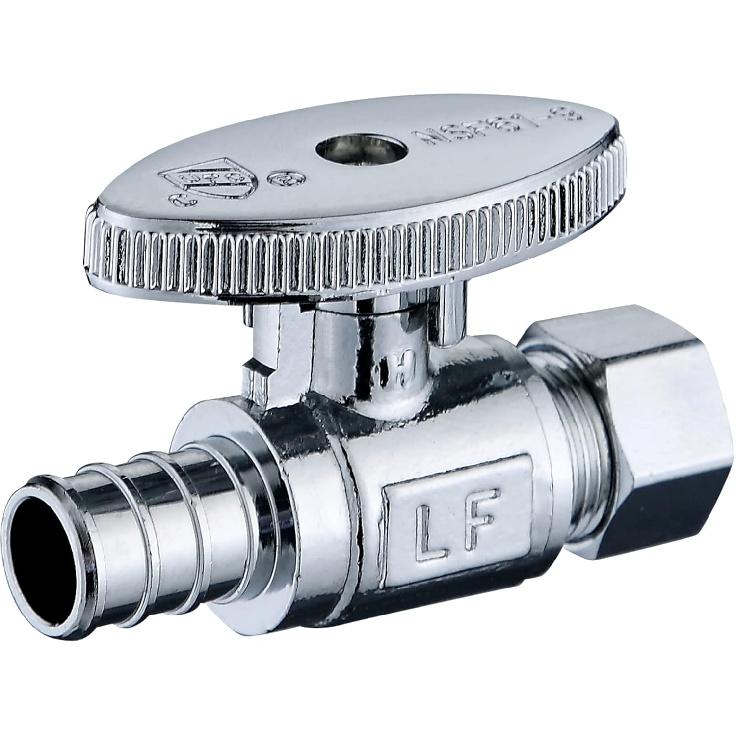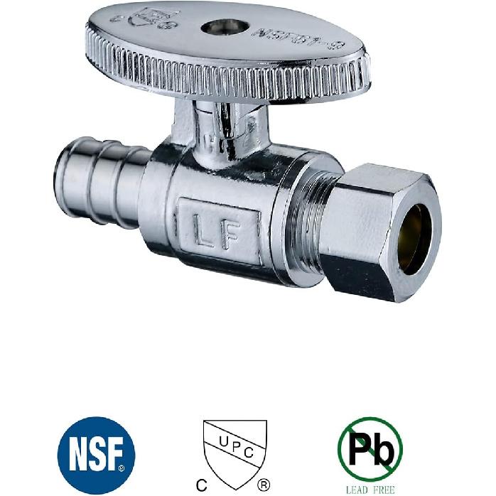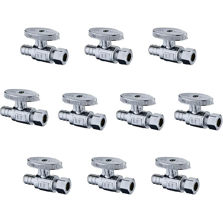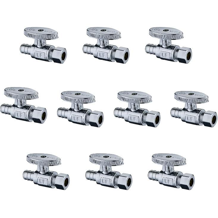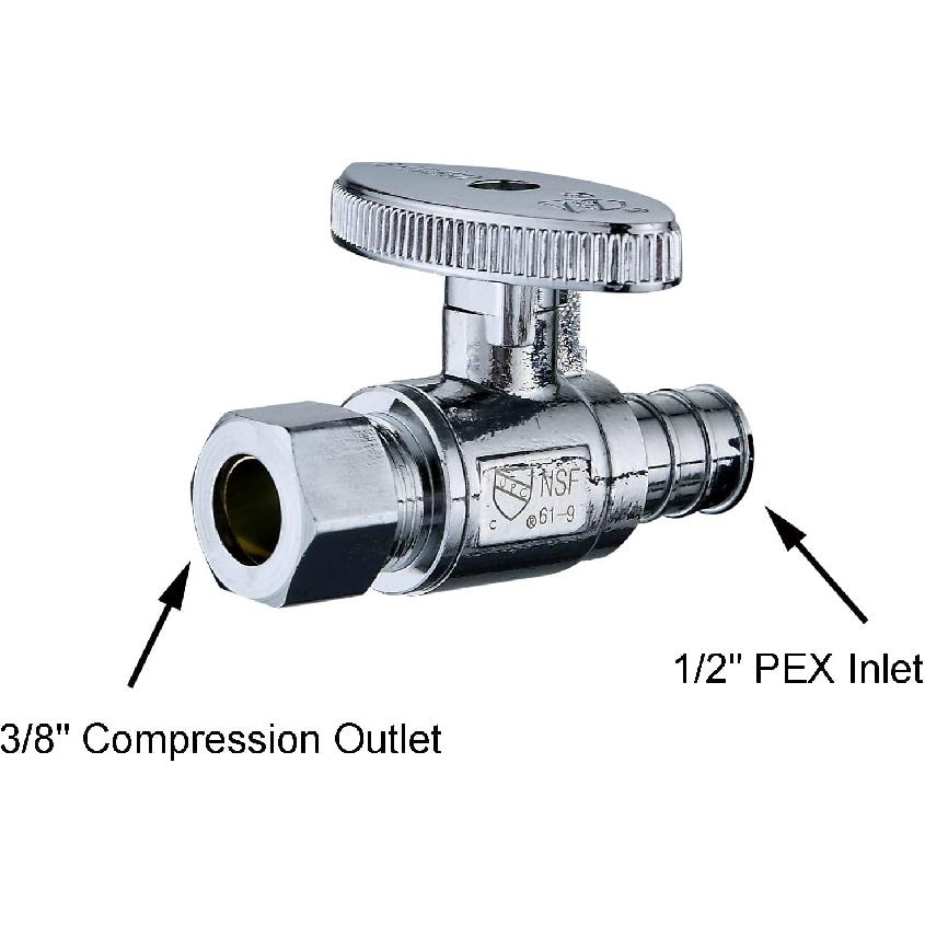 (10-Pack) Cyrret Straight Stop Pex Valve 1/2" PEX Inlet x 3/8" Compression Outlet No Lead Brass Angle Stop Sink Water Shut off Valve Quarter 1/4 Turn