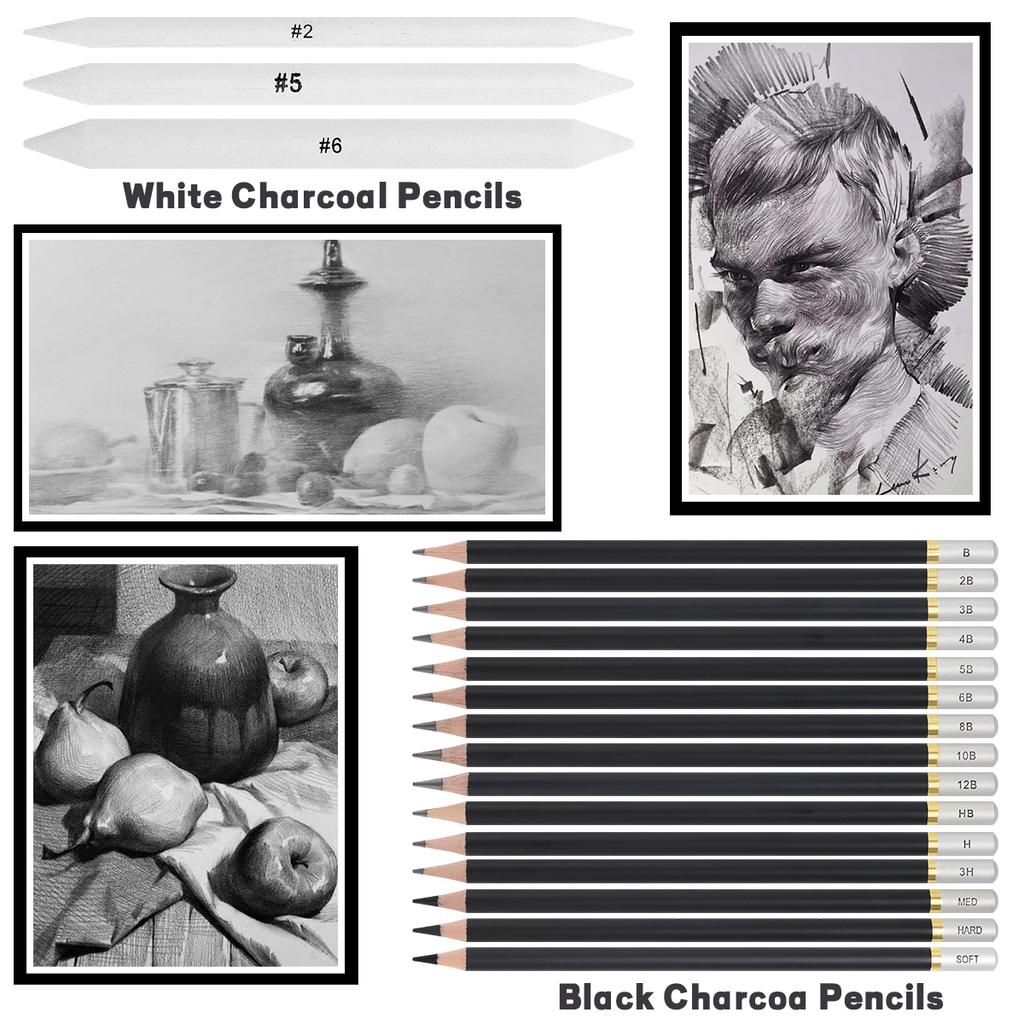 Bview Art Профессиональный набор для рисования для художников, 32 предмета: 17 графитовых карандашей, 5 угольных карандашей, растушевки и студийные инструменты