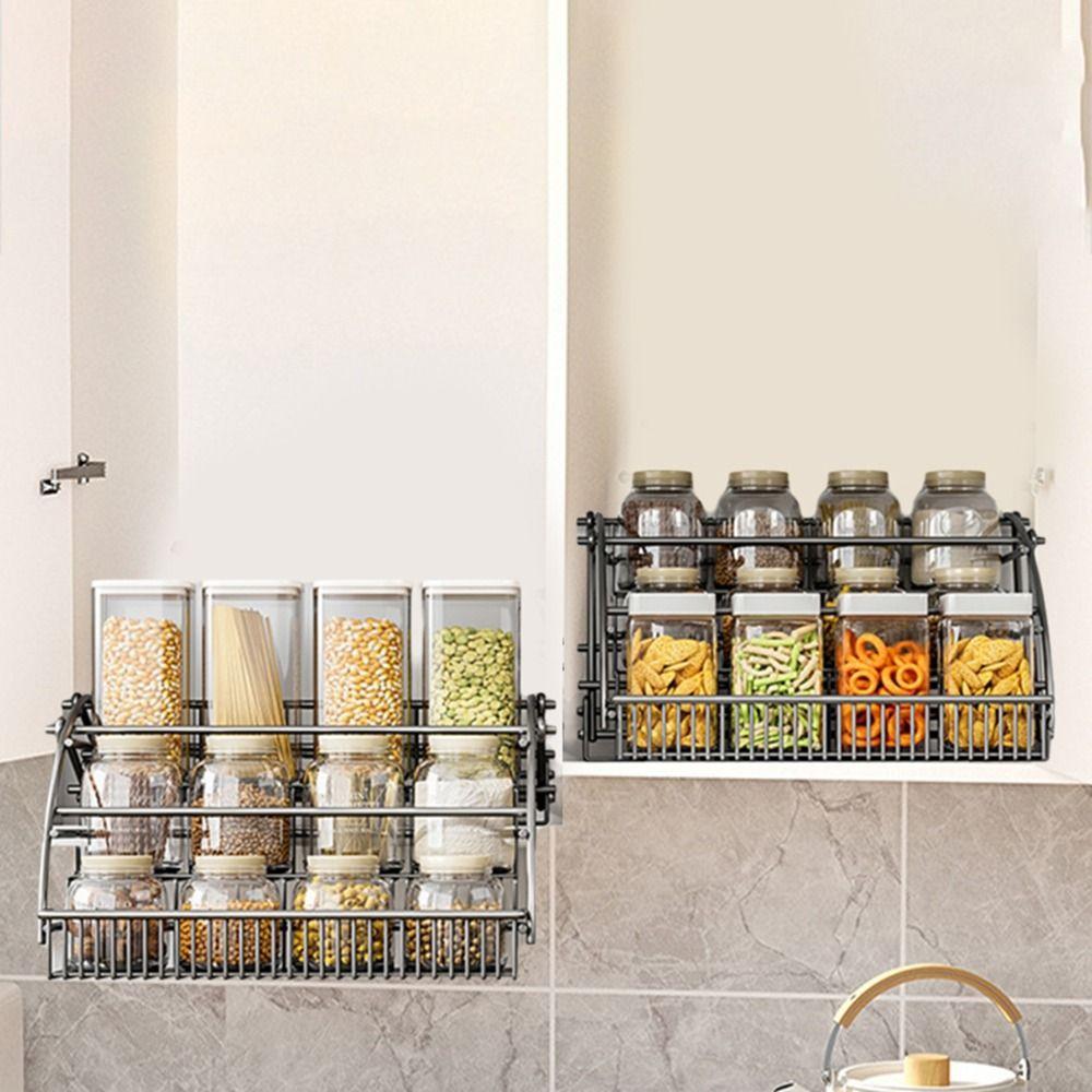 Компактная выдвижная полка для специй, навесной шкаф, углеродистая сталь, выдвижная корзина для бутылок с приправами, кладовая — купить товар онлайн с бесплатной доставкой до всему миру!