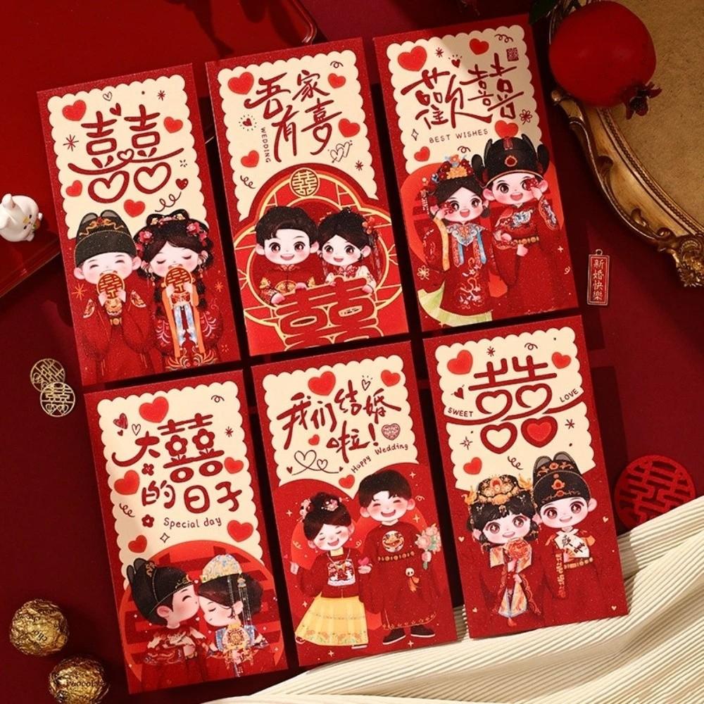 Groom and Bride Chinese Wedding Hongbao Multiple Patterns Red Pocket Valentine's Day Gift