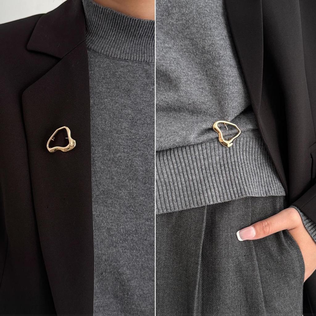 Шикарная трансграничная брошь из сплава: Неправильная металлическая булавка для костюма с отделкой под лен