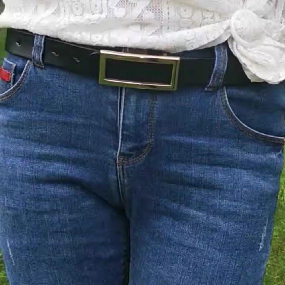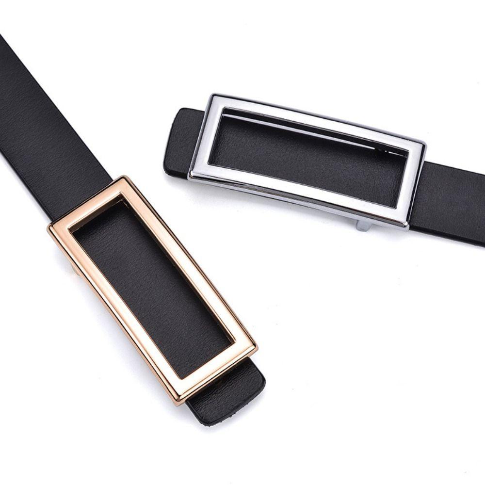 Elegant Genuine Leather Belts Rectangle Buckle Waist Belt Casual Skinny Thin Belt All-Match