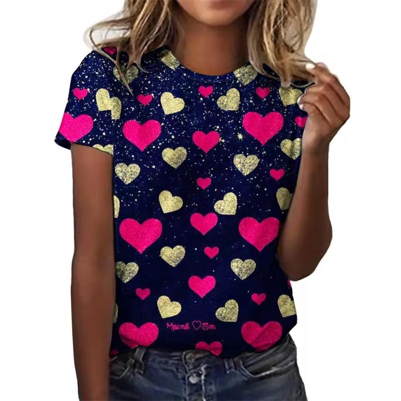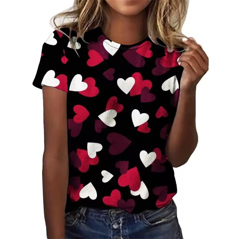 Women's T-shirt 3D Pattern Printed Casual Short Sleeved Love Pattern Printing O-Neck Top Fashionable Street Women's Clothing