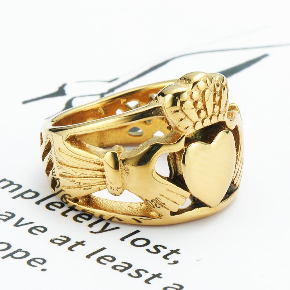 Claddagh Celtic Knot Ring 316L Stainless Steel Hand Holding Heart Crown Jewelry for Women Biker Style