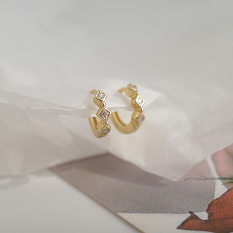 Cubic Zircon Round Earrings Design Sense New Wave Earrings Cold Wind Earrings Simple Compact Fashion Elegant Accessories Classic Jewelry Casual Daily