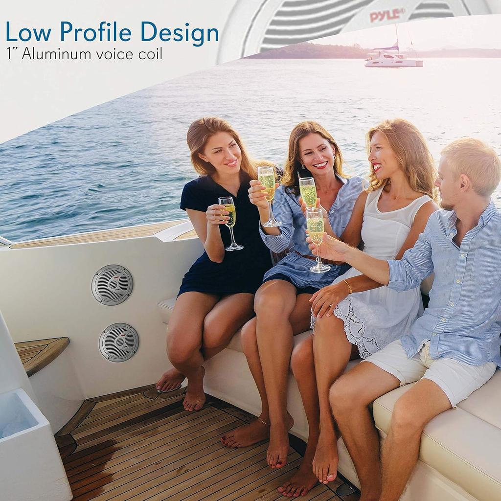 Pyle 6.5” Dual Marine Speakers - 2 Way Waterproof and Weather Resistant Outdoor Audio Stereo Sound System with 150 Watt Power, Polypropylene Cone