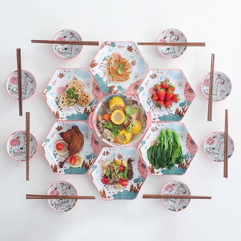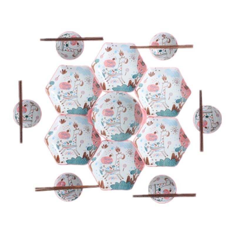 Qianhua Zhike 'Deer Facing Sun' 23-Piece Ceramic Dinnerware Set