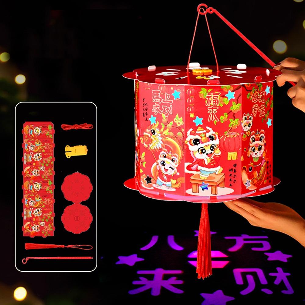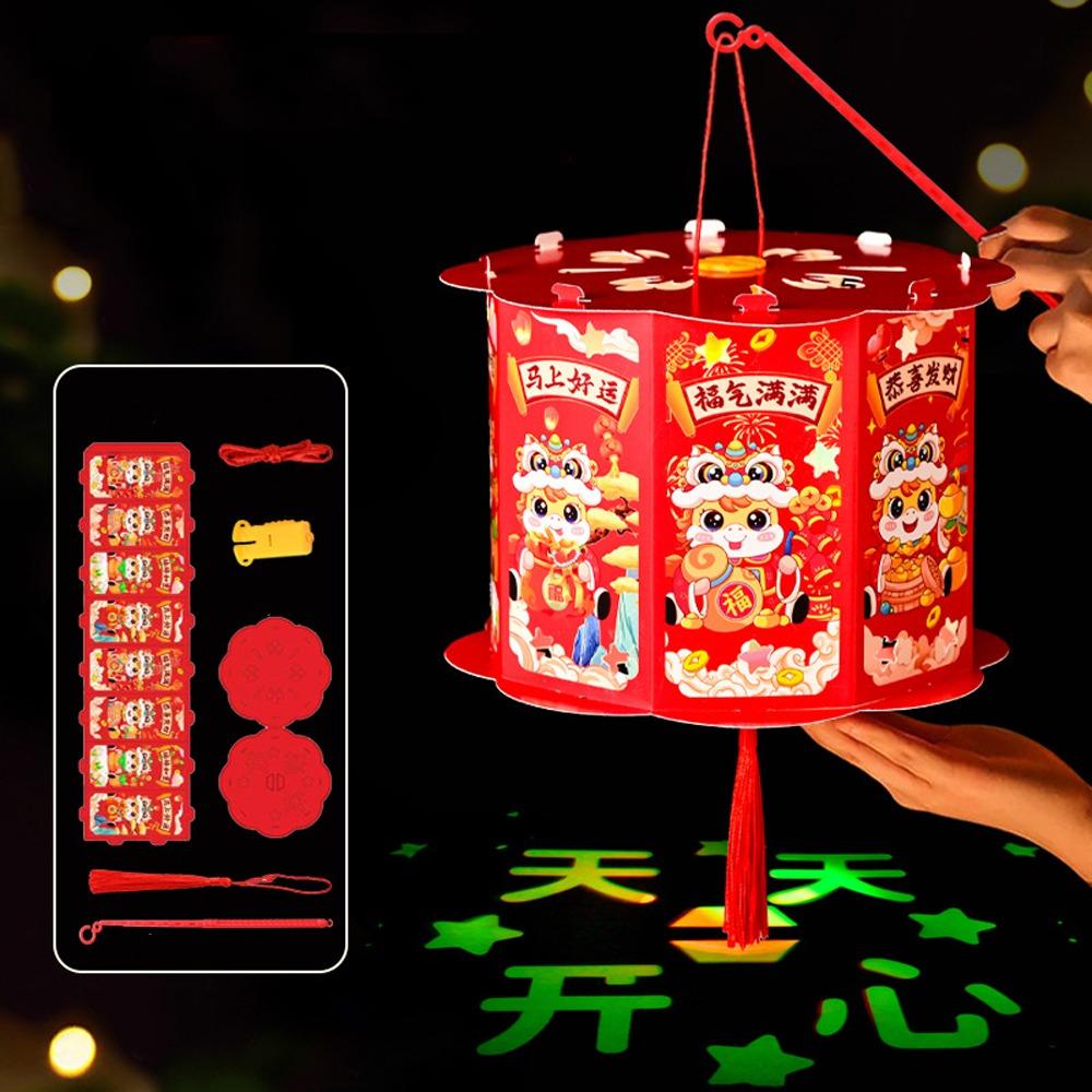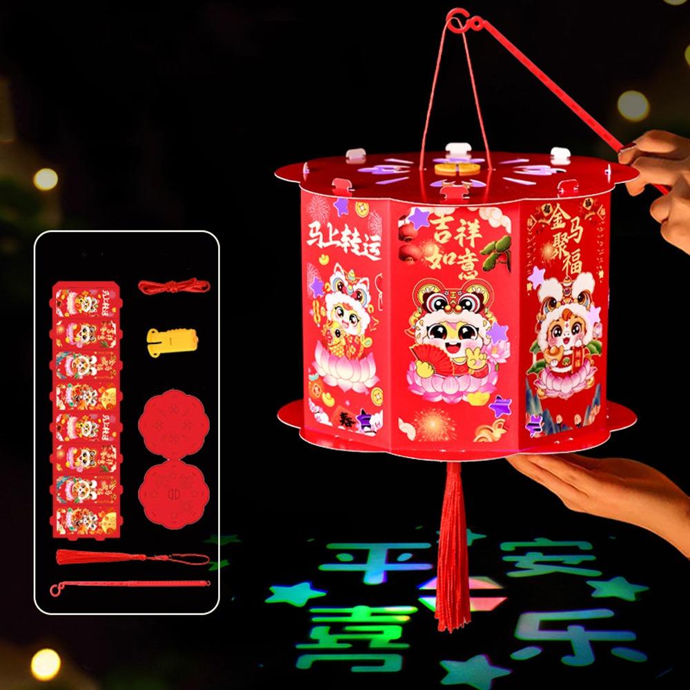Cartoon Zodiac Horse Lantern Handmade Projection Feature Chinese New Year Lanterns with Tassel Blessing Words