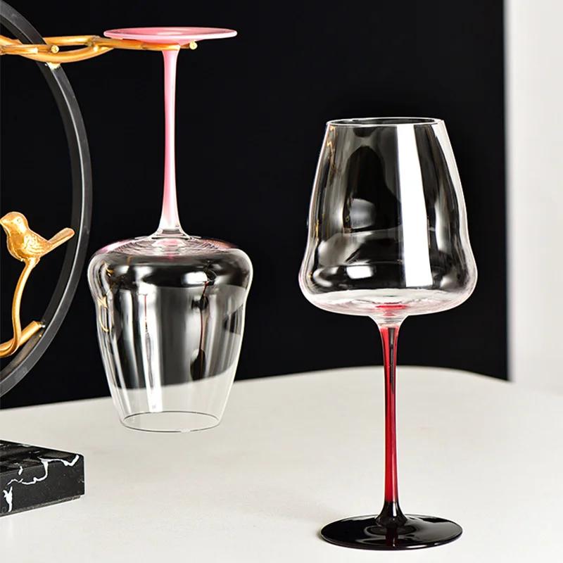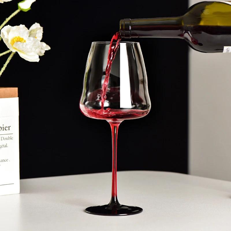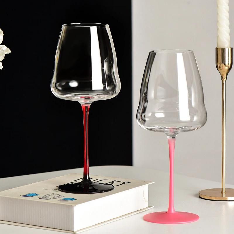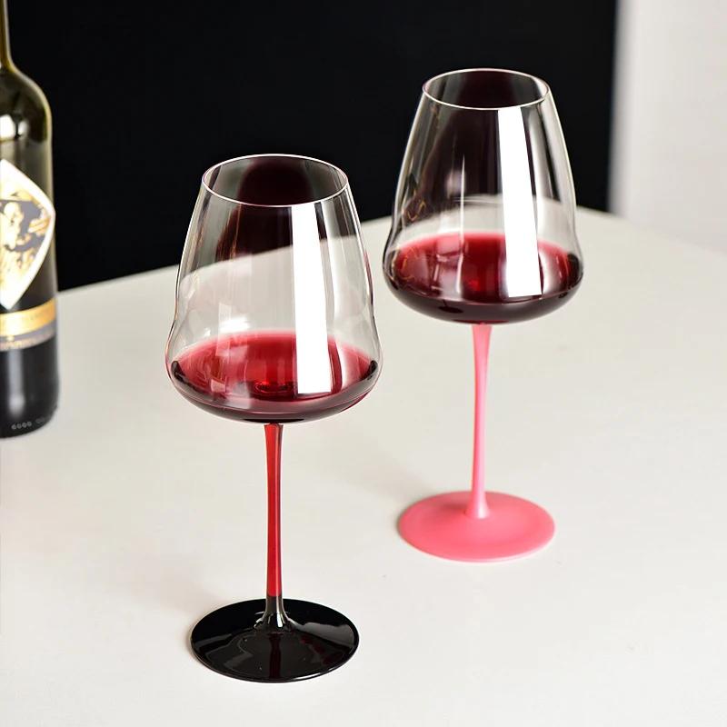 Бокал для красного вина из хрусталя класса люкс большой вместимости, с красной ножкой и черным дном, бокал для бургундского вина, креативный розовый бокал с бантом