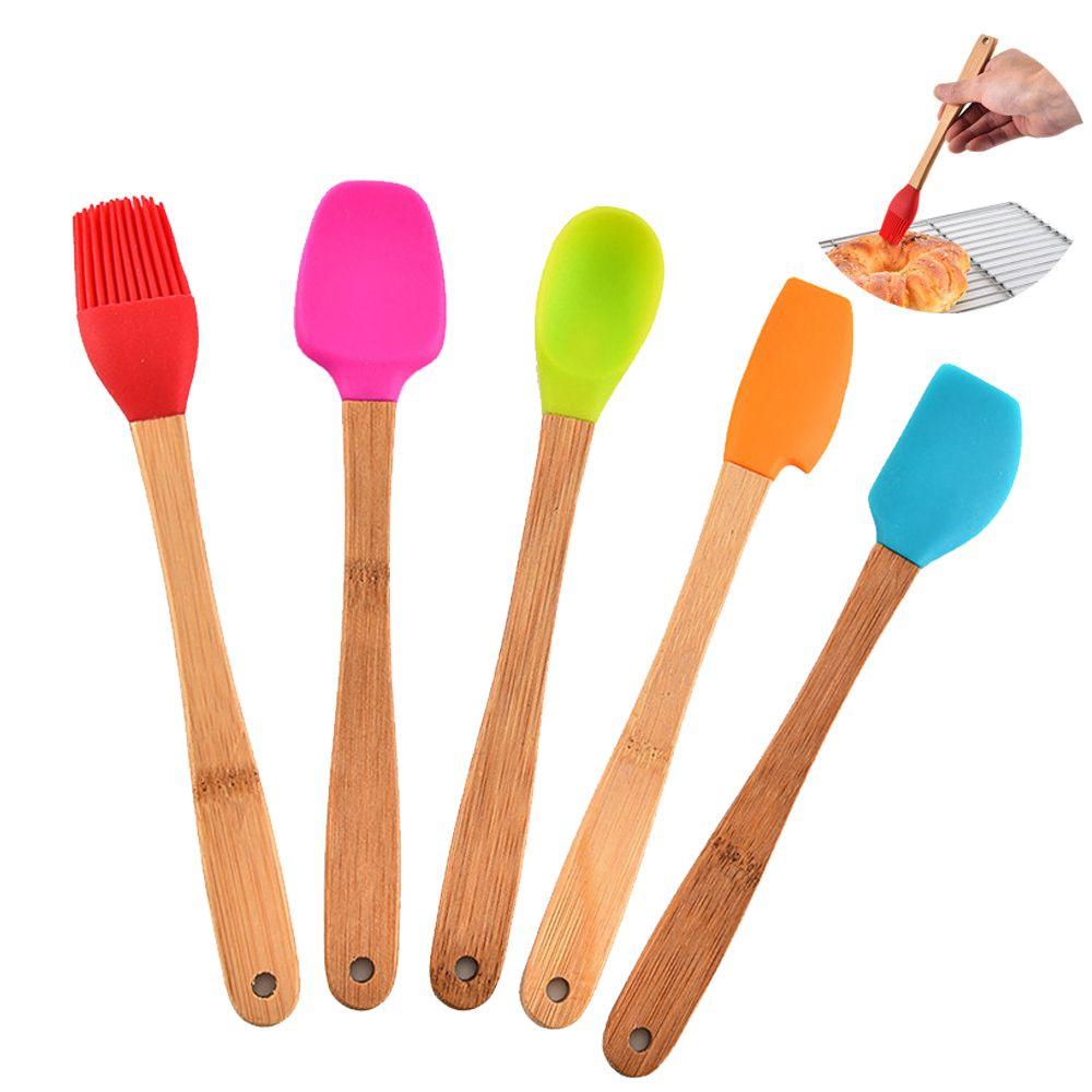 Cookie Wooden Handle Silicone Kicthen Utensils Mini Spatula Brush Baking Tools Cake Scraper