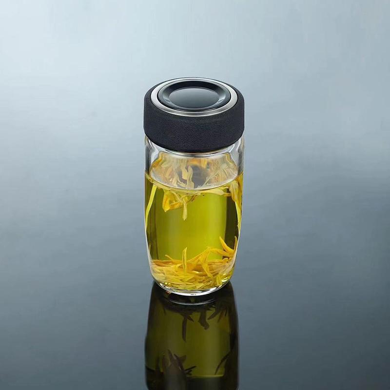 450ML Glass Water Bottle Oval Shaped Double Layer Tea Water Cup Infuser Tumbler Drinkware Water Bottle With Tea Filter